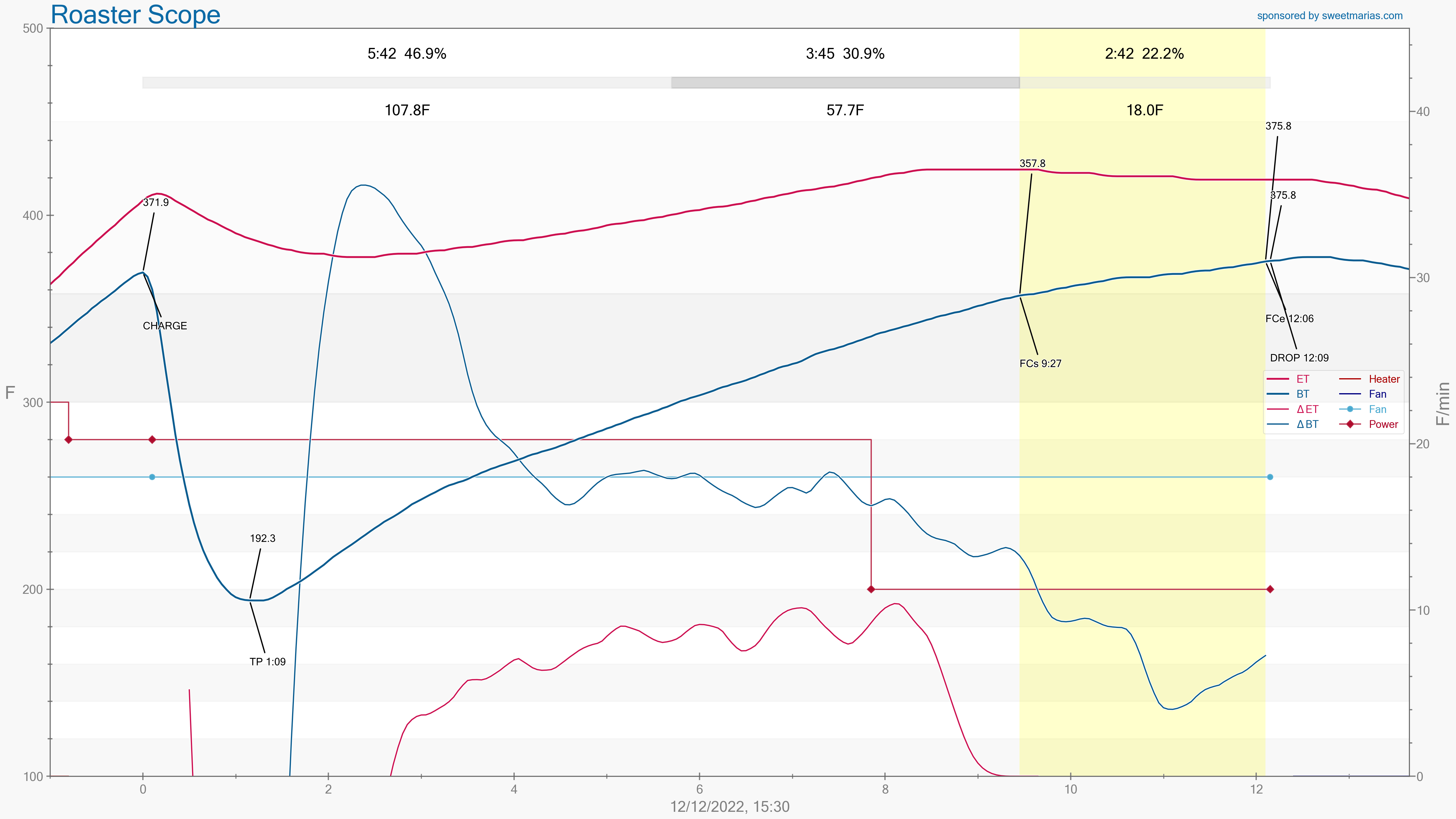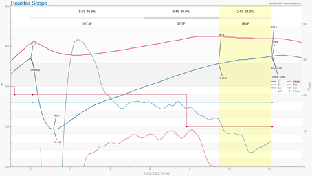 This profile was first attempt at automating some of the roasting events using Artisan.