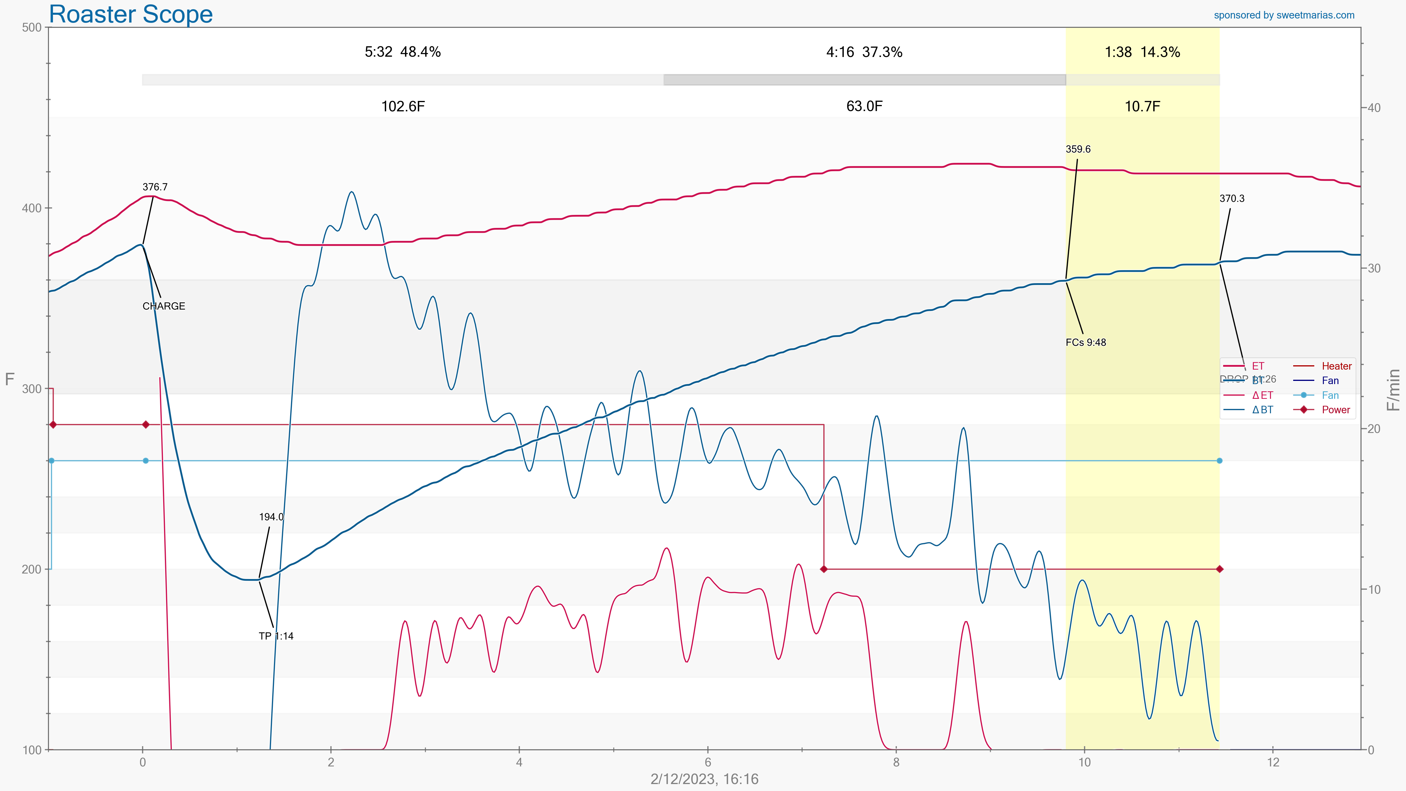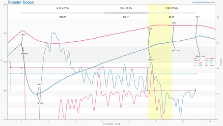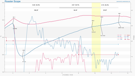 Dropped batch #3 at 370F to give roast some bright notes.